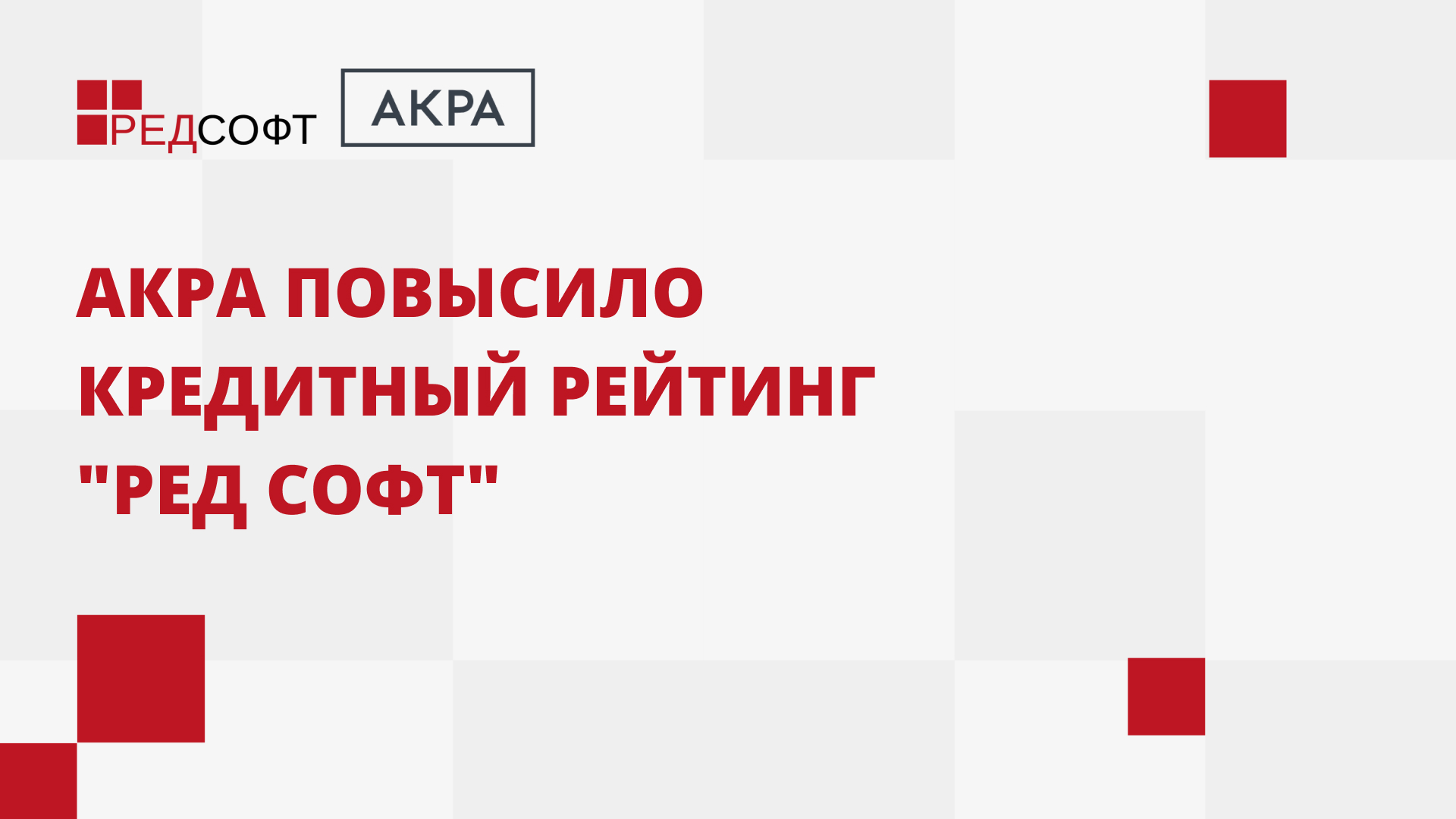 Аналитическое кредитное рейтинговое агентство (АКРА) повысило рейтинг РЕД СОФТ до уровня BB+(RU), изменив прогноз на “Стабильный”.
