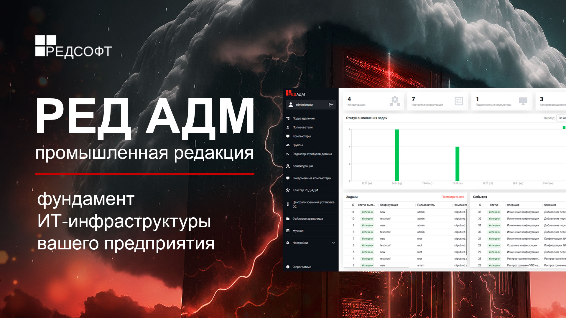 РЕД СОФТ объявляет о релизе РЕД АДМ: Промышленная редакция 1.1 — расширенной версии системы централизованного управления, включающей в себя такие компоненты как: контроллер домена, файловое хранилище, установка ОС по сети. Продукт предоставляет возможность управлять инфраструктурой любого размера из удобного веб-интерфейса и совершенно не требует затрат на повышение квалификации сотрудников.
